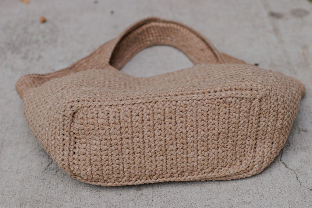 Right Side / Wrong Side: The right side of the bag is the side with the visible ridge around the perimeter of the base (see photo below). The right side will face you as you crochet the handles and all even-numbered rounds on the body of your bag.